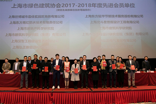 2月28日,上海市綠色建筑協會第五屆第二次會員大會在滬召開。上海東方雨虹被評為上海市綠色建筑協會“2017-2018年度先進會員單位”。